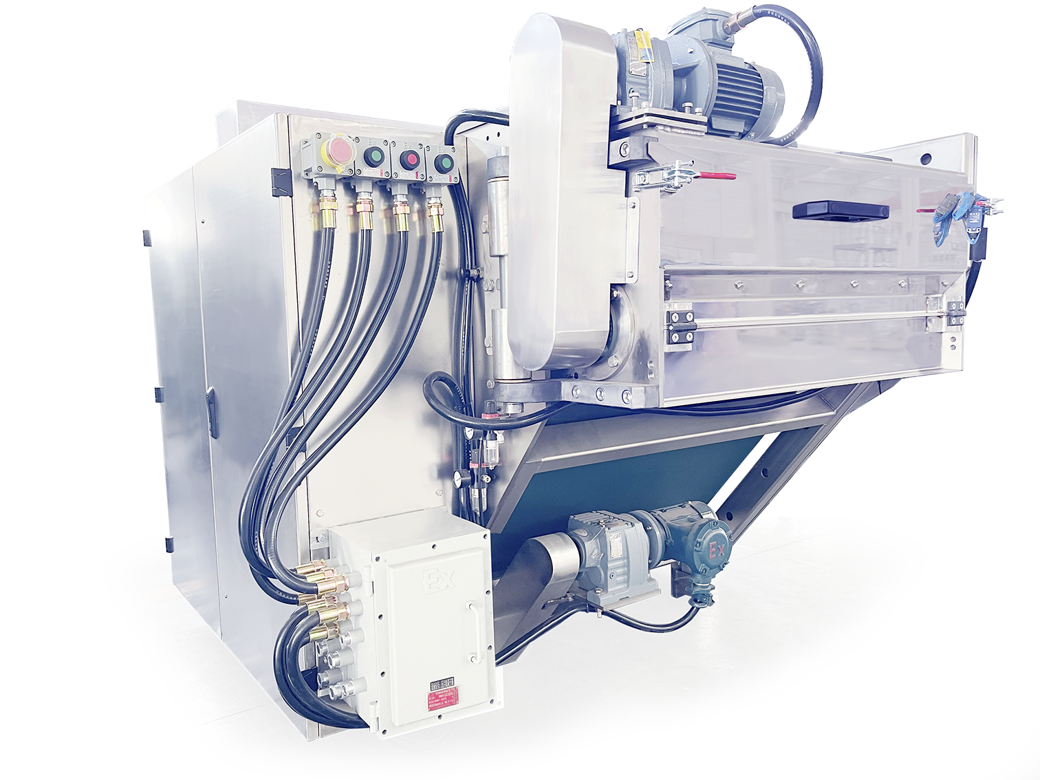 該系列壓片機(jī)結(jié)構(gòu)緊湊,由擠壓輥、超大直徑的冷卻輥、高強(qiáng)度德國輸送帶和破碎輥組成。新結(jié)構(gòu)的輸送帶可在幾分鐘內(nèi)從側(cè)面取出清潔或者更換,破碎機(jī)構(gòu)可旋轉(zhuǎn)打開,方便清潔。